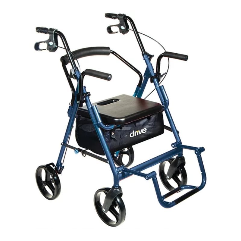 Combina las características de un andador o una silla de transporte en una unidad. El usuario puede caminar por sí mismo o ser trasladado de manera segura por la persona a cargo.