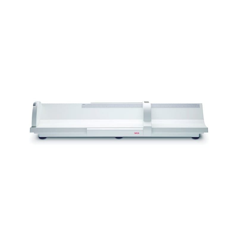 Las amplias dimensiones de la plataforma y los laterales elevados y ligeramente redondeados permiten colocar al infante rápida y segura en una posición adecuada. El tope para los pies está firmemente montado en dos rieles guía con correderas, a lo largo de la escala de medición. El tope para los pies, bloqueable, permite atender al bebé hasta que se pueda anotar el resultado. Todos los componentes ofrecen una extraordinaria calidad, una larga vida útil y una gran resistencia.