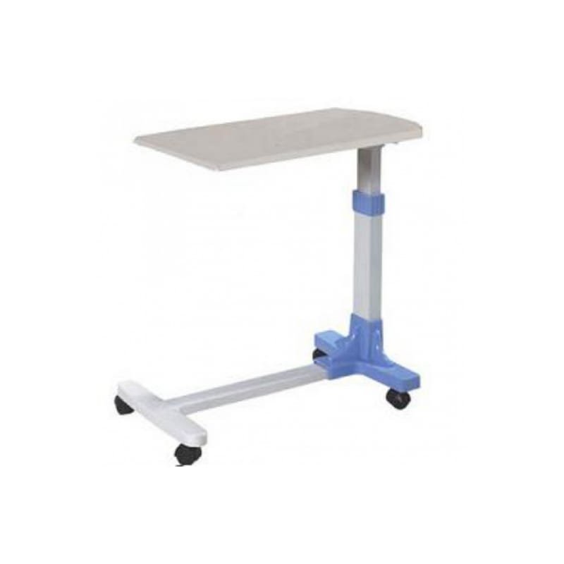Mesa rodable con sistema de frenos accionada por pedal.